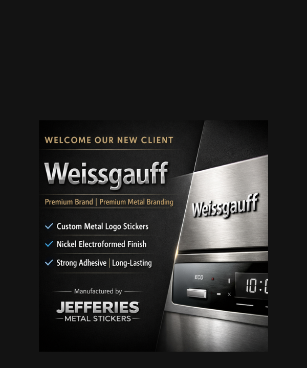 At Jafrys Metal Stickers, we manufacture custom metal logo stickers that enhance the premium look of products and strengthen brand identity. Our metal logo stickers are widely used on appliances, electronics, machinery, furniture, packaging, and luxury products.