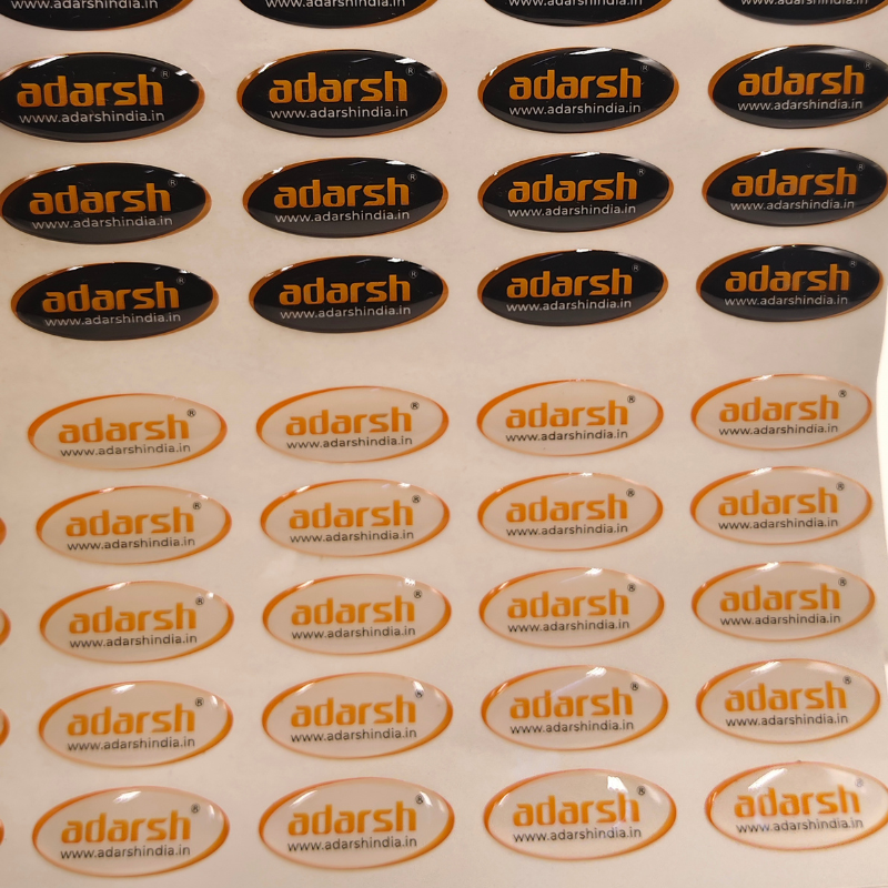 Premium transparent dome stickers on an A4 sheet designed for professional branding and labeling. Made with high-quality epoxy coating, these stickers offer a crystal-clear 3D effect with excellent durability. Waterproof, scratch-resistant, and long-lasting, they are perfect for product labels, logo branding, and packaging applications. Suitable for indoor and semi-outdoor use. Custom designs and bulk orders available across India.